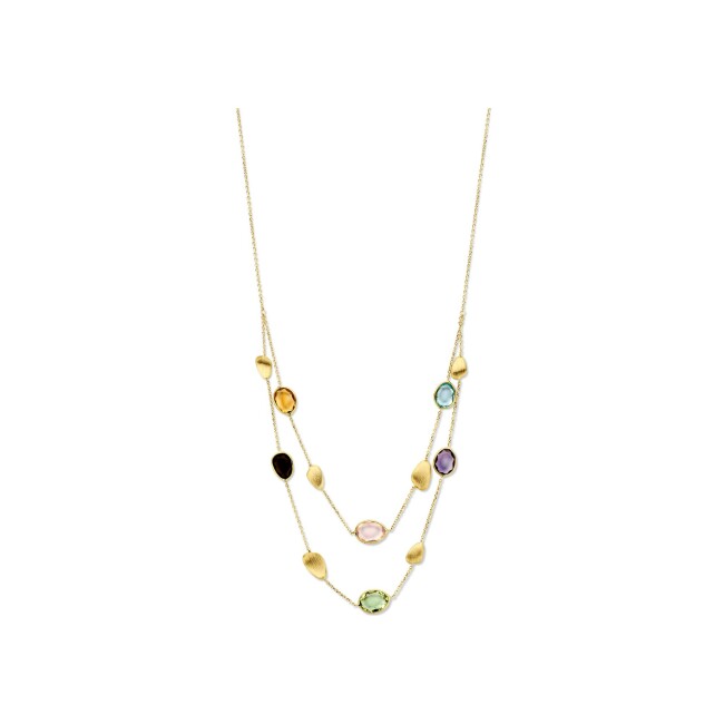Collier Femme adorée en or jaune, topaze bleue, quarts roze, quartz fumé, prasiolite, améthyste et citrine